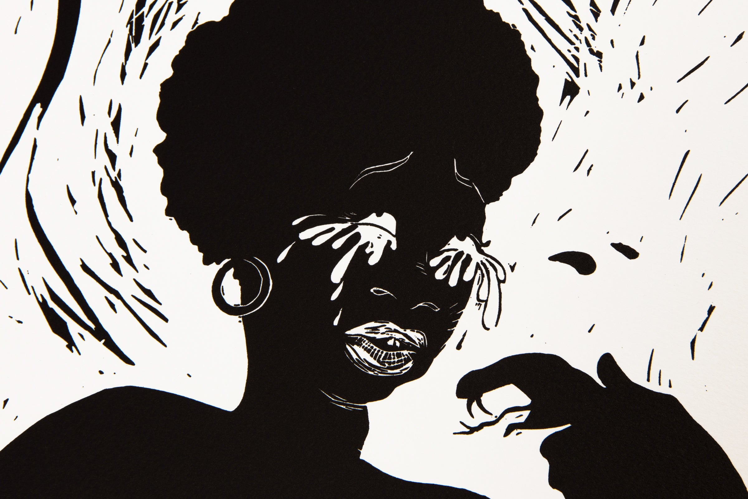 Beyond her iconic silhouettes, Walker has expanded her practice to include collage, painting, drawing, printmaking, and large-scale installations. Her fine art prints in particular demonstrate her exceptional technical mastery, as she explores the tension between delicacy and brutality through line, shadow, and composition. These works maintain the bold visual clarity of her silhouettes while deepening the psychological and historical resonance of her narratives.